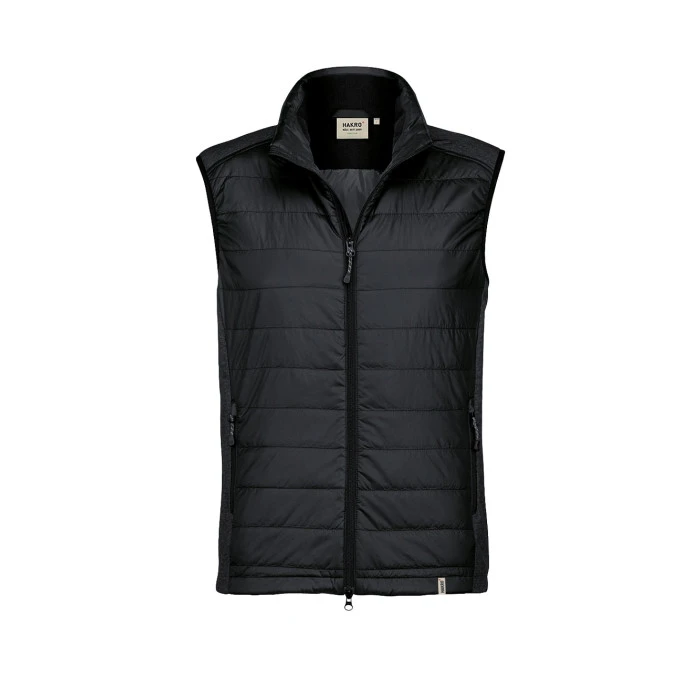 Leichte, wasserabweisende und atmungsaktive Hybridweste mit kontrastfarbigen Einsätzen an den Seiten, Kragen und Schultern, hochwertigem 2-Wege-Frontreißverschluss mit innenliegender Windschutzpatte und Kinnschutz, funktioneller MP3-Player-/iPod-Innentasche und Einschubtaschen mit Reißverschlüssen.