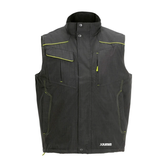 Die Applikationen in Neonfarben sehen sportlich und chic aus. Mit winddichtem und atmungsaktivem Material ist die Weste der perfekte Begleiter bei jedem Arbeitseinsatz.