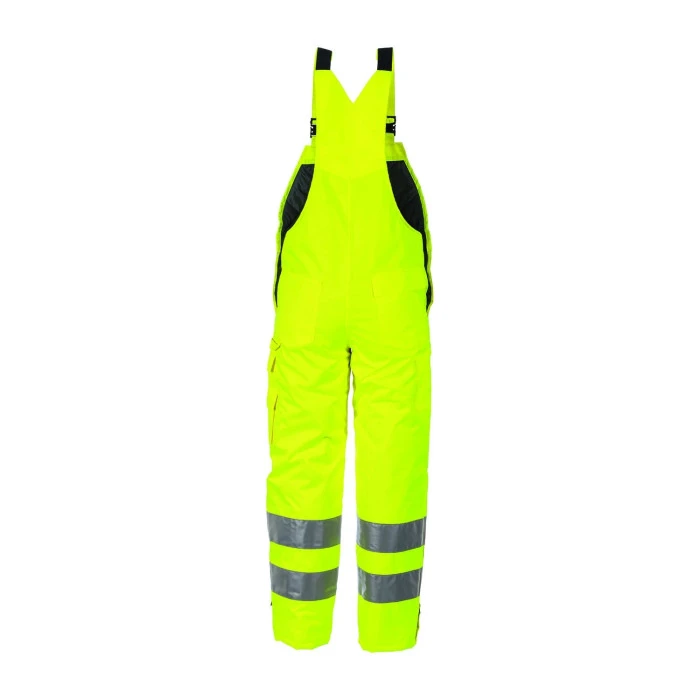 Die wattierte Latzhose schafft an kalten Tagen ein perfektes Körperklima. Die fünf Reflexbänder sorgen zudem für optimale Sichtbarkeit im Dunkeln.